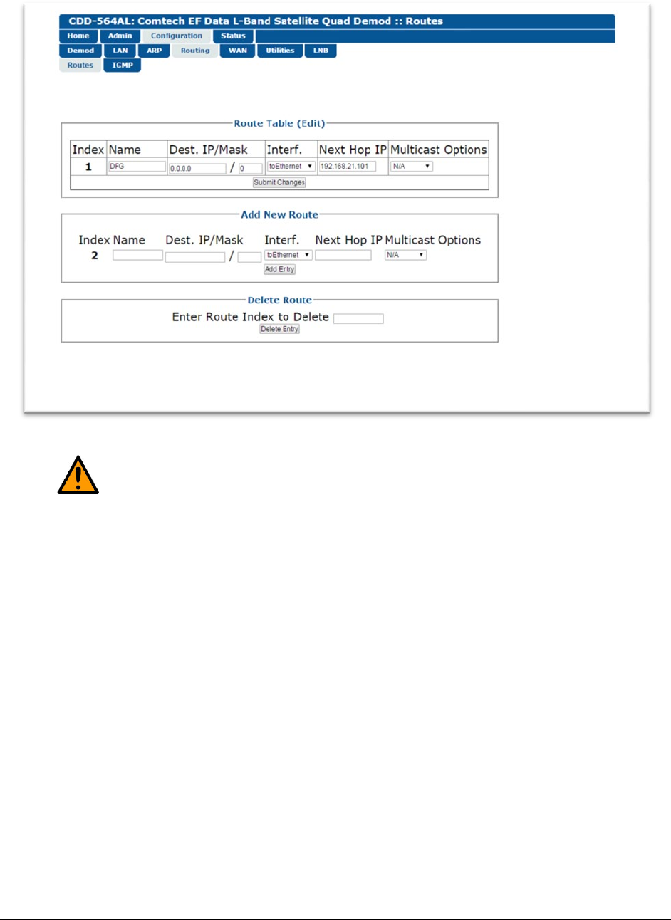 Use this page section to change existing entries in the Route Table.